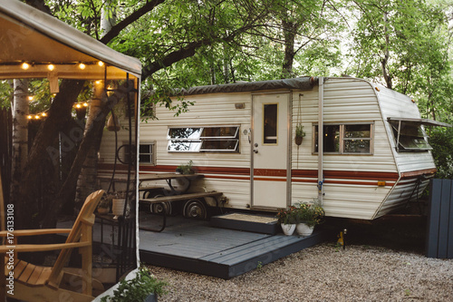 Vintage Trailer And Outdoor Seating Area Buy This Stock
