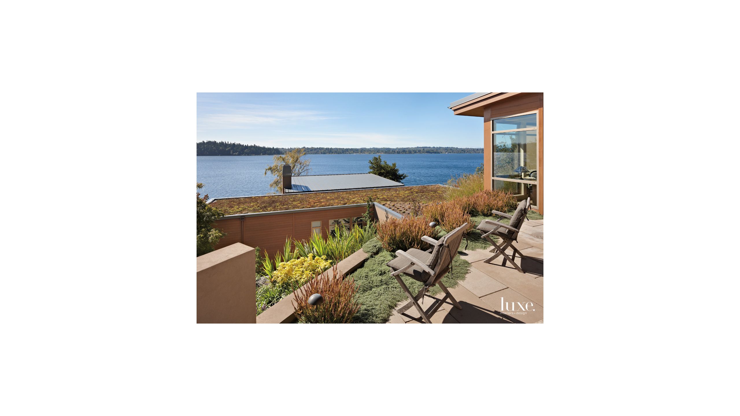 Modern Neutral Outdoor Seating Area With Green Roof Luxe