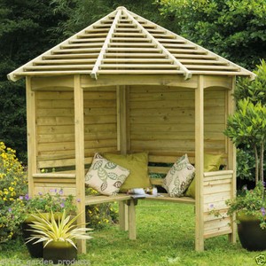 Details About Wooden Garden Gazebo Arbour Seat Pressure Treated Outdoor Seating Slatted Roof