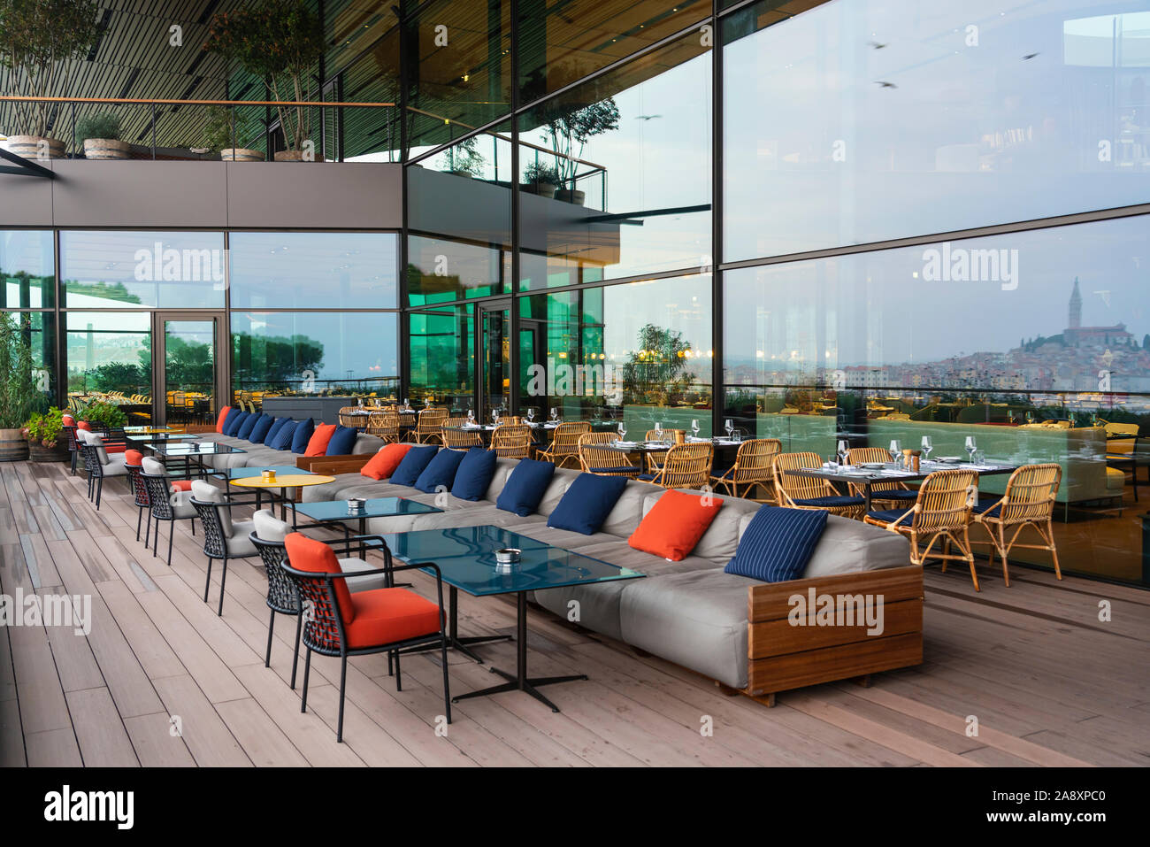 Es Vivers Lounge Outdoor Seating At Dusk High Res Stock