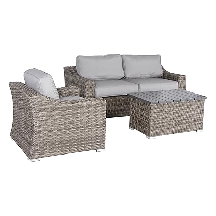 Century Modern Outdoor Marina Collection Patio Sofa Set Wicker Rattan Outdoor Seating Aluminium Frame Resort Grade Furniture With Cushioned Seat By